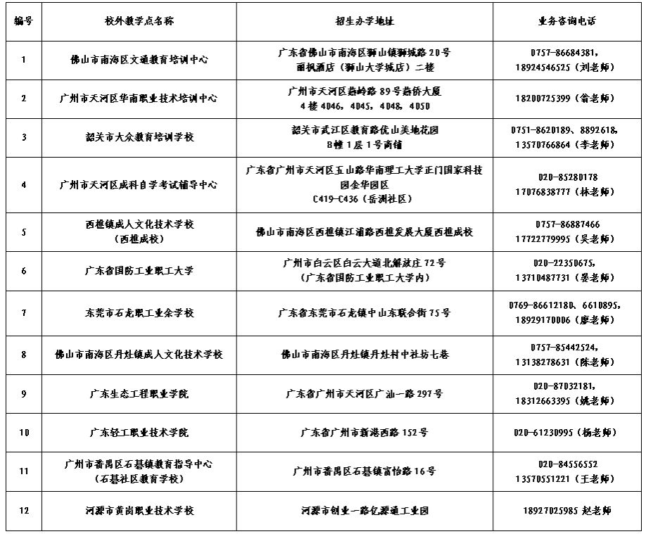 仲恺农业工程学院2025年高等学历继续教育备案校外教学点